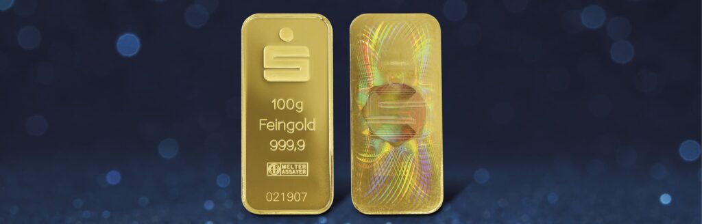 Mit dem Sparkassen-Kinebarren bieten wir ein exklusives Produkt im Edelmetallmarkt. Das Besondere: Nur die Helaba produziert diese hochwertigen Goldbarren mit dem patentierten Kinegramm-Sicherheitsmerkmal. Das Kinegramm erscheint auf der Rückseite und erzeugt je nach Lichteinfall faszinierende Farbeffekte. Die 999,9er Feingoldbarren erfüllen höchste Qualitätsstandards der London Bullion Market Association (LBMA) und überzeugen durch weitere Sicherheitsmerkmale: eine geprägte Seriennummer, ein detailliertes Echtheitszertifikat und den Prüfstempel des renommierten Schweizer Herstellers Argor- Heraeus. Von handlichen Einheiten im Scheckkartenformat bis zu größeren Barren vereint der Kinebarren zeitlose Wertbeständigkeit mit modernster Sicherheitstechnologie.